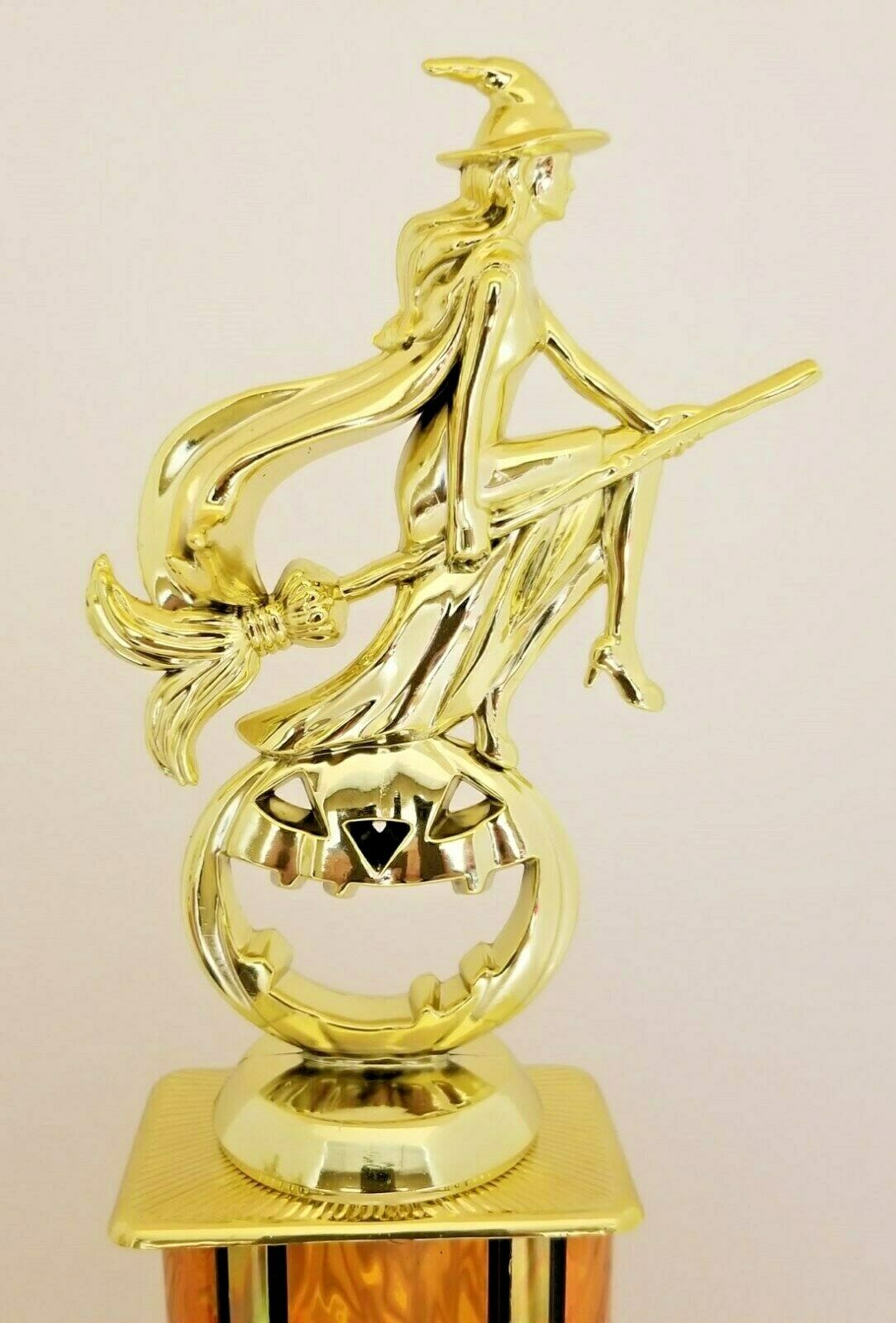HALLOWEEN WICKED WITCH 13" TROPHY . INCLUDES WICKED WITCH FIGURE, WIDE ORANGE COLUMN AND BLACK BASE WITH PLATE THAT WE WILL ENGRAVE FOR FREE. GREAT AWARD FOR YOUR HALLOWEEN PARTY OR EVENT