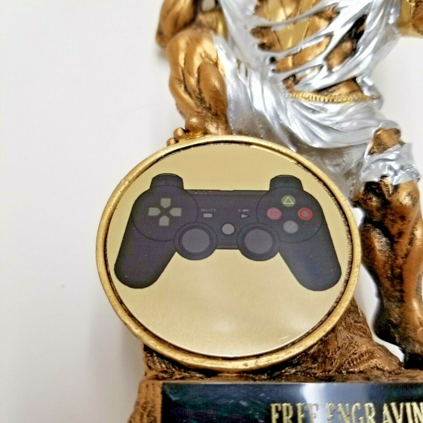 THIS IS A GREAT 6 1/2" PLAYSTATION VIDEO GAME CONTROLLER VICTORY MONSTER RESIN TROPHY FOR ESPORTS AWARD. THIS TROPHY HAS A TON OF DETAIL AND LOOKS GREAT. IT COMES COMPLETE WITH THE PLAYSTATION CONTROLLER DISC AND INCLUDES FREE ENGRAVING ON THE FRONT PLATE.